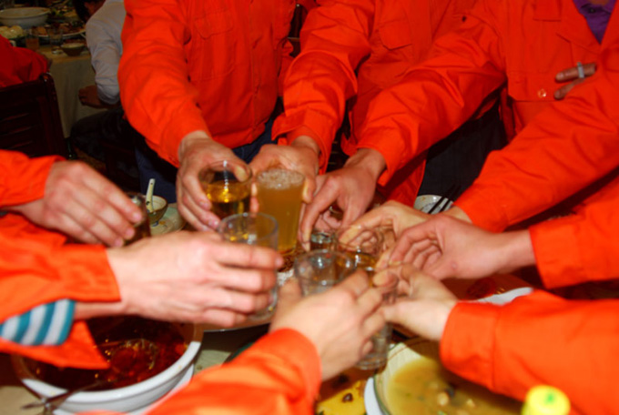 公司領(lǐng)導(dǎo)層向全體員工敬酒